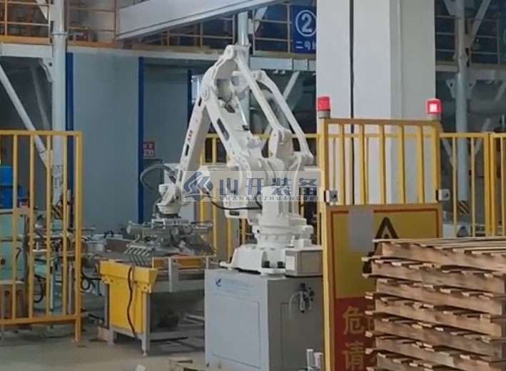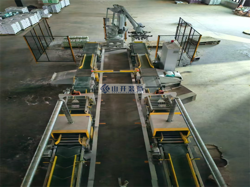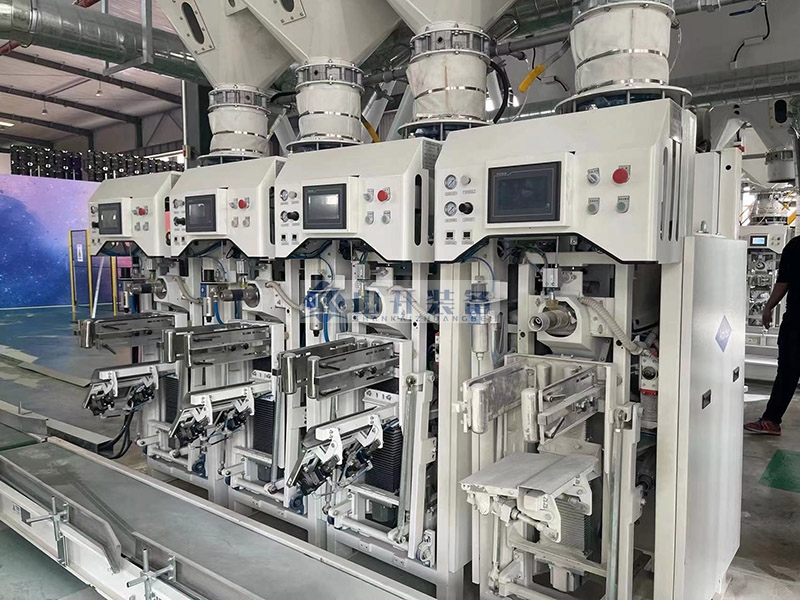 在山開裝備的生產(chǎn)車間內(nèi),一臺臺嶄新的閥口包裝機(jī)正整齊地排列著,等待著被裝載上...